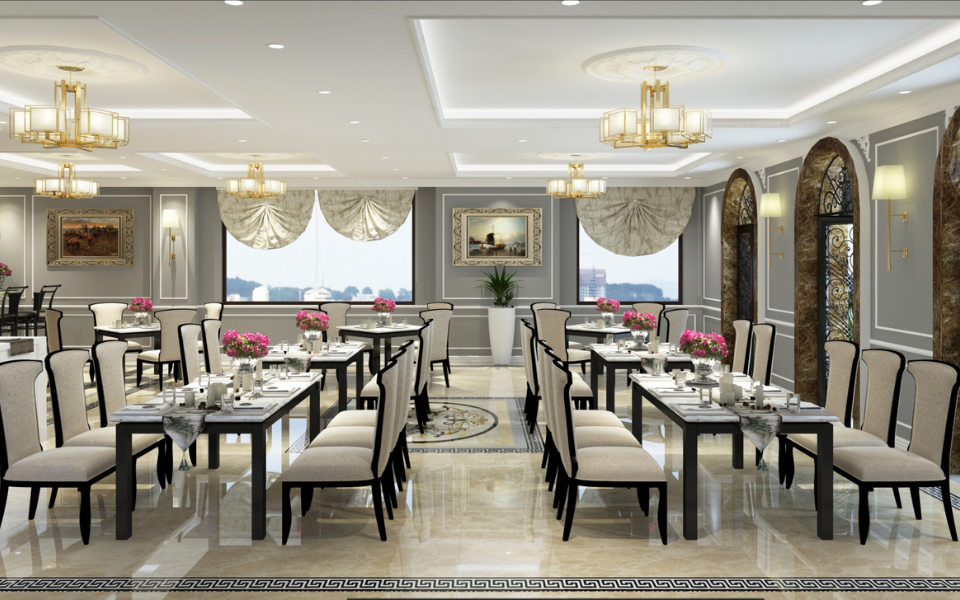 With its luxurious ambiance, the Golden Turtle Restaurant is a renowned dining establishment in Bac Giang, well-known among diners. The spacious and airy interior features a design inspired by traditional Vietnamese style.