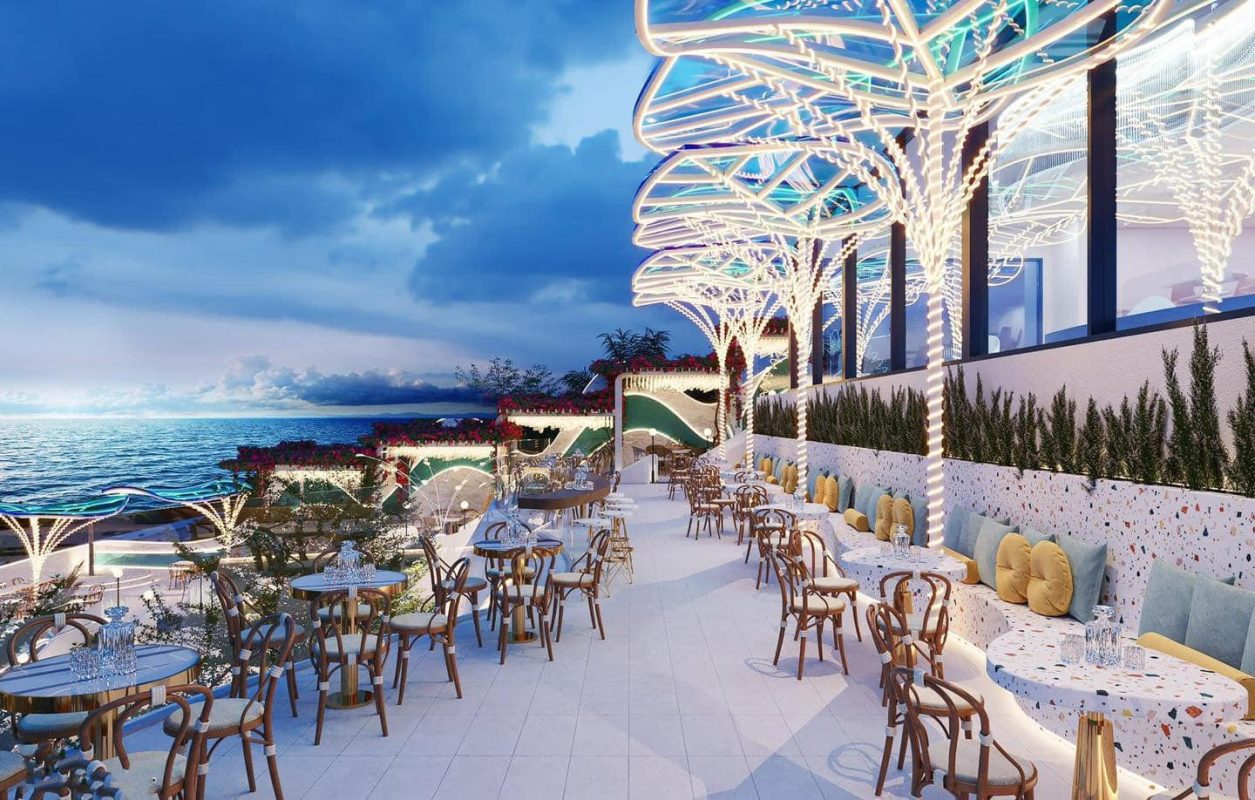 With its spacious, open design and European-inspired romance, the café stands out with its purple-themed décor. Guests can choose between an airy outdoor terrace or a comfortable indoor lounge. Combined with its stunning sea view, Gazebo is an ideal destination for coffee lovers and nightlife seekers alike.