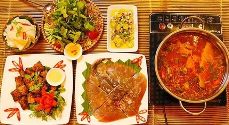 Although there are many types of vegetables to eat with hot pot, the most important feature is water lily. And that’s why people here use the rustic name of this flower to name the dish. The main ingredients of Phuoc Hai hotpot are selected from fresh fish species such as rays, pineapple fish, cobia, catfish, catfish,… but the most delicious is lychee. However, today this type of fish is very rare so it is not widely used.